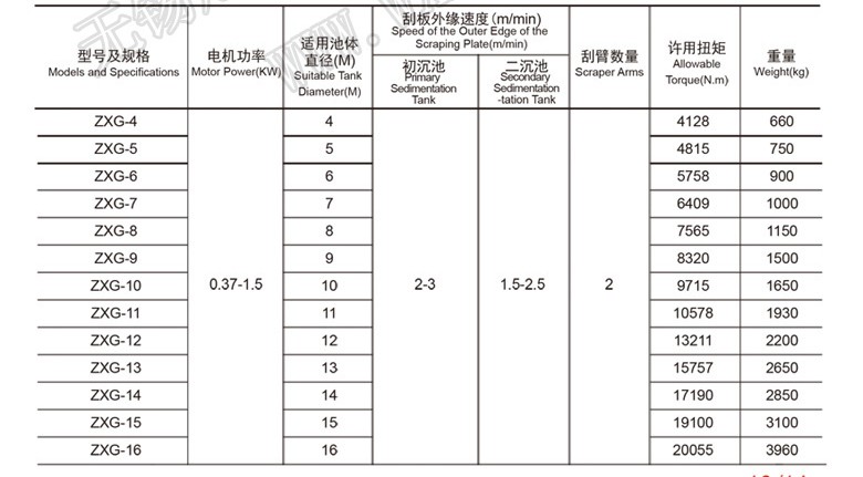 通過減速驅動和懸掛式組件的傳動,由刮板將污泥刮集到中心集泥槽,依靠凈水壓力或泵排出池外。采用中間進水和排泥,周邊排水,保證水流均勻,利用液位差自吸式排泥配有浮渣刮集排除裝置和過載保護裝置。